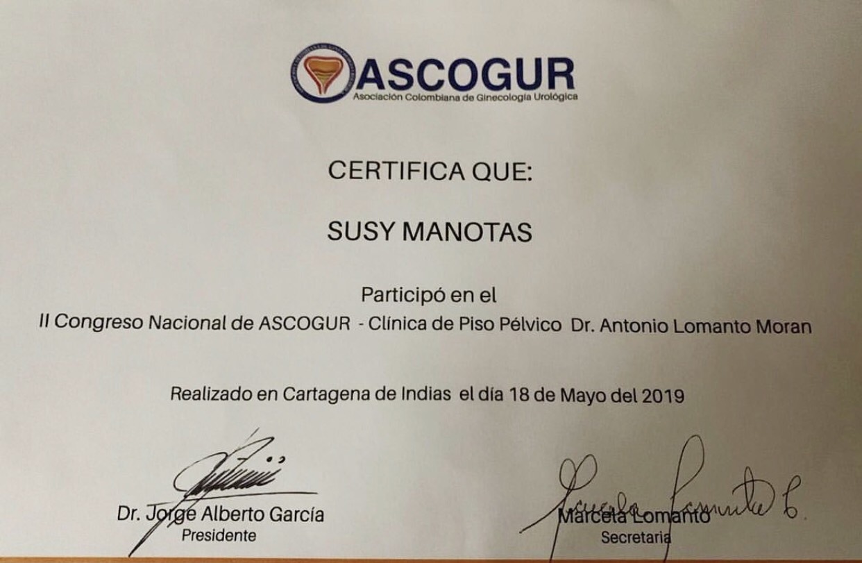 - Curso Pre congreso Teórico Práctico de Disyunción del Piso Pélvico. Avalado por la Asociación Colombiana de Menopausia y la División de Ciencias de la Salud de la Universidad del Norte. Barranquilla, 2007.